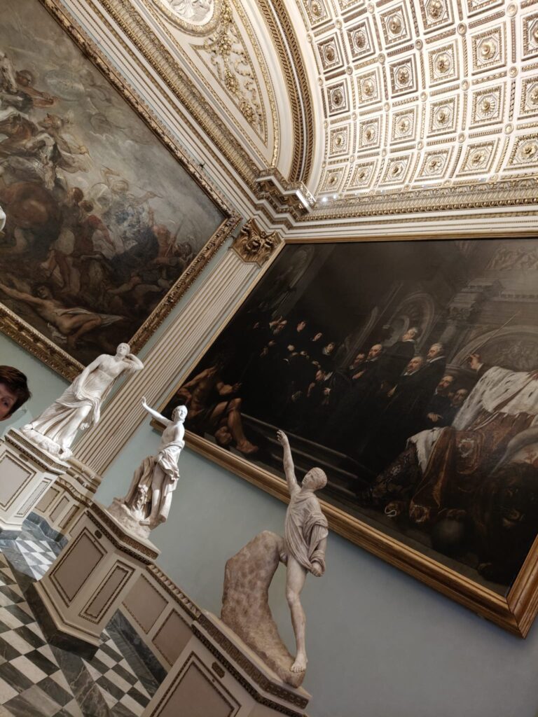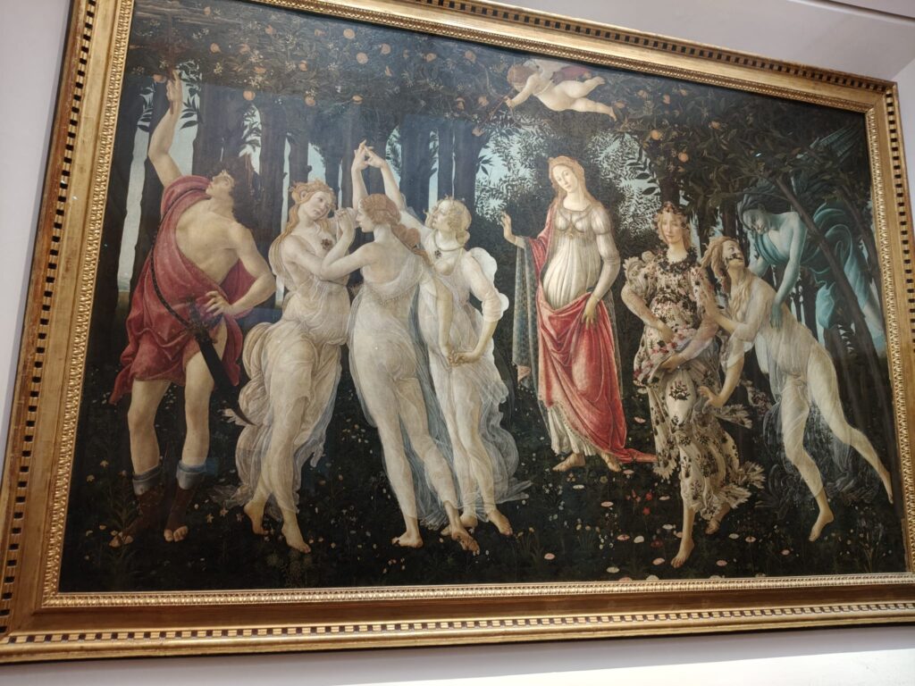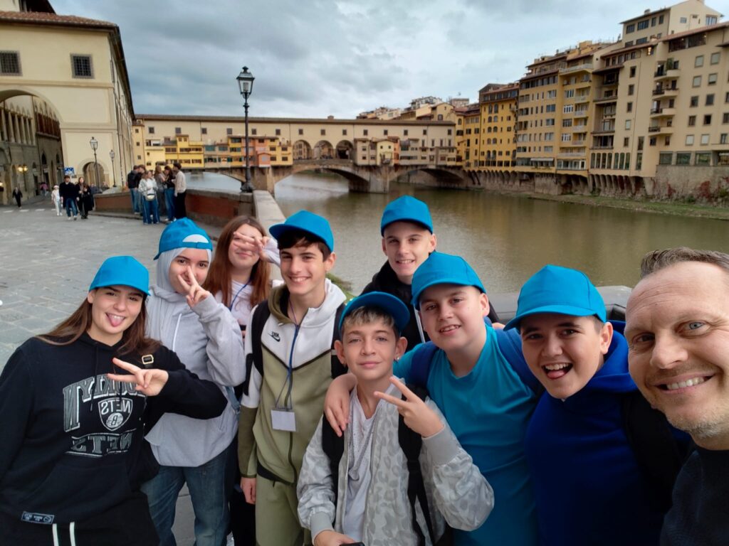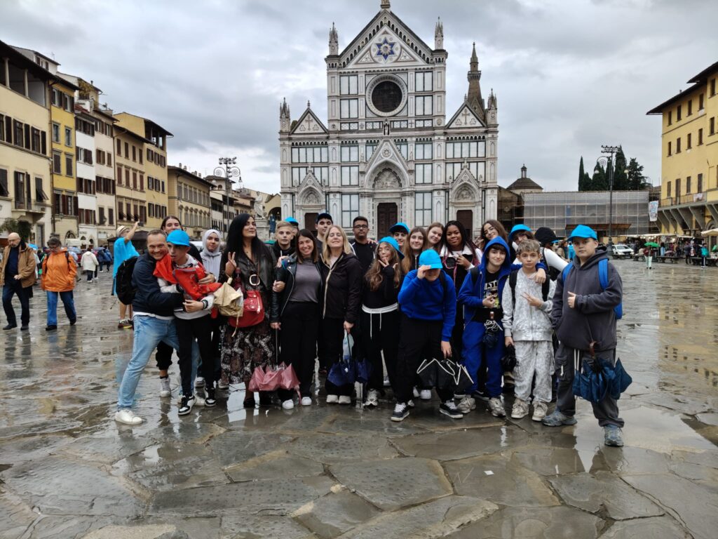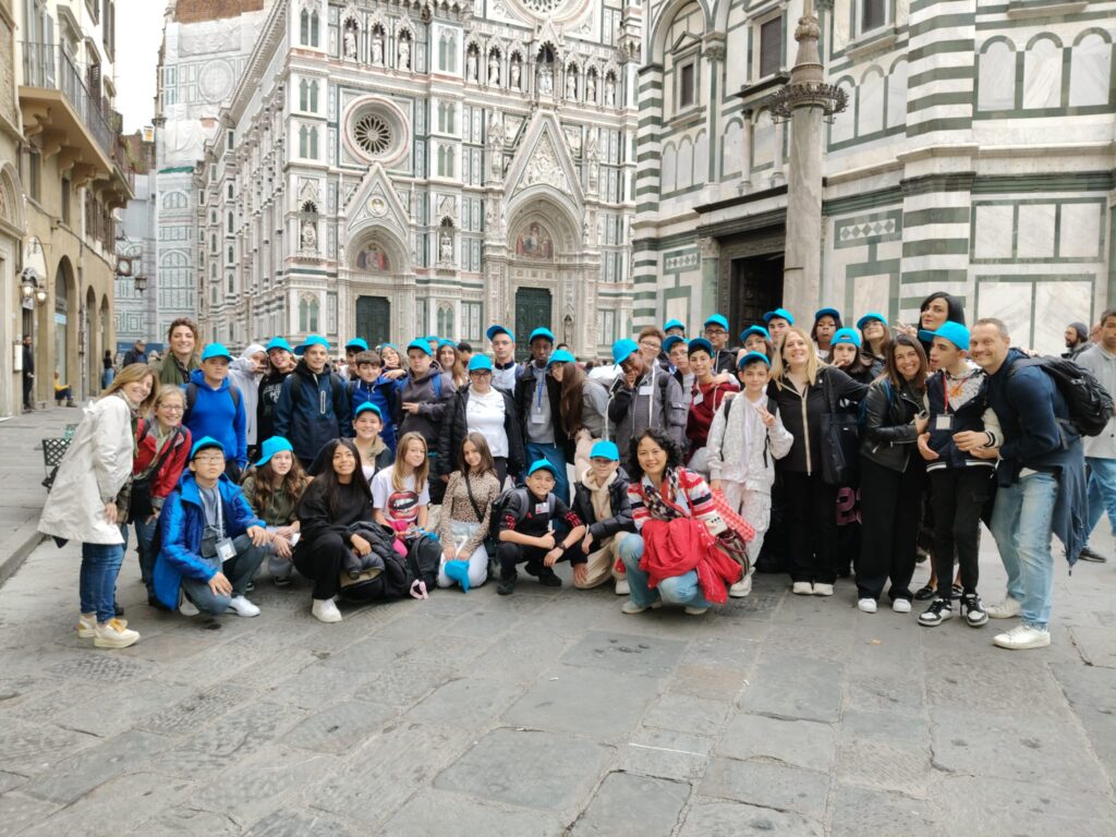 Le classi 2D e 3A il 30 ottobre 2025 si sono recate in treno a Firenze per visitare gli Uffizi e la casa di Dante. La giornata, anche se dal punto di vista meteorologico non è stata favorevole, a causa della pioggia, è stata “illuminata” dallo splendore della Firenze medievale e rinascimentale. La galleria d’arte che abbiamo visitato è immensa, su tre piani, immersa nel centro di Firenze, dove i ragazzi e le ragazze della nostra scuola secondaria di primo grado, preparati dai loro prof. di arte, hanno potuto riconoscere e ricercare quelle opere trattate in classe o studiate nei libri. Anche se giovanissimi, non è passata inosservata la preziosità e grandiosità delle pale di Cimabue, Duccio e Giotto; davanti alla Venere e alla Primavera del Botticelli, opere da sogno del Rinascimento, siamo rimasti in estasi! Ammirare dal vivo opere di Caravaggio o Artemisia Gentileschi, opere senza tempo, è stata un’esperienza indimenticabile.